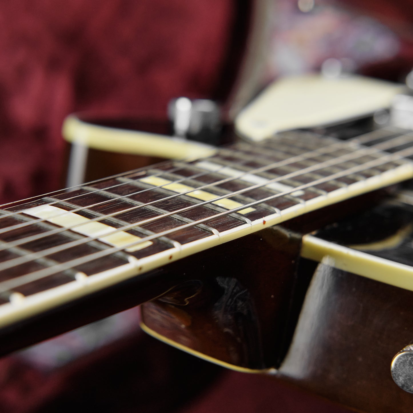 Cosmetic condition overall is excellent for an instrument this old. Minor scuffing, dings, and dents can be found throughout, but don't detract in any major way from the presentation. This example has had a modern Bigsby retrofitted at some point, but includes the original tailpiece. Hardware is fully functional, and plays well with a low-medium action.
