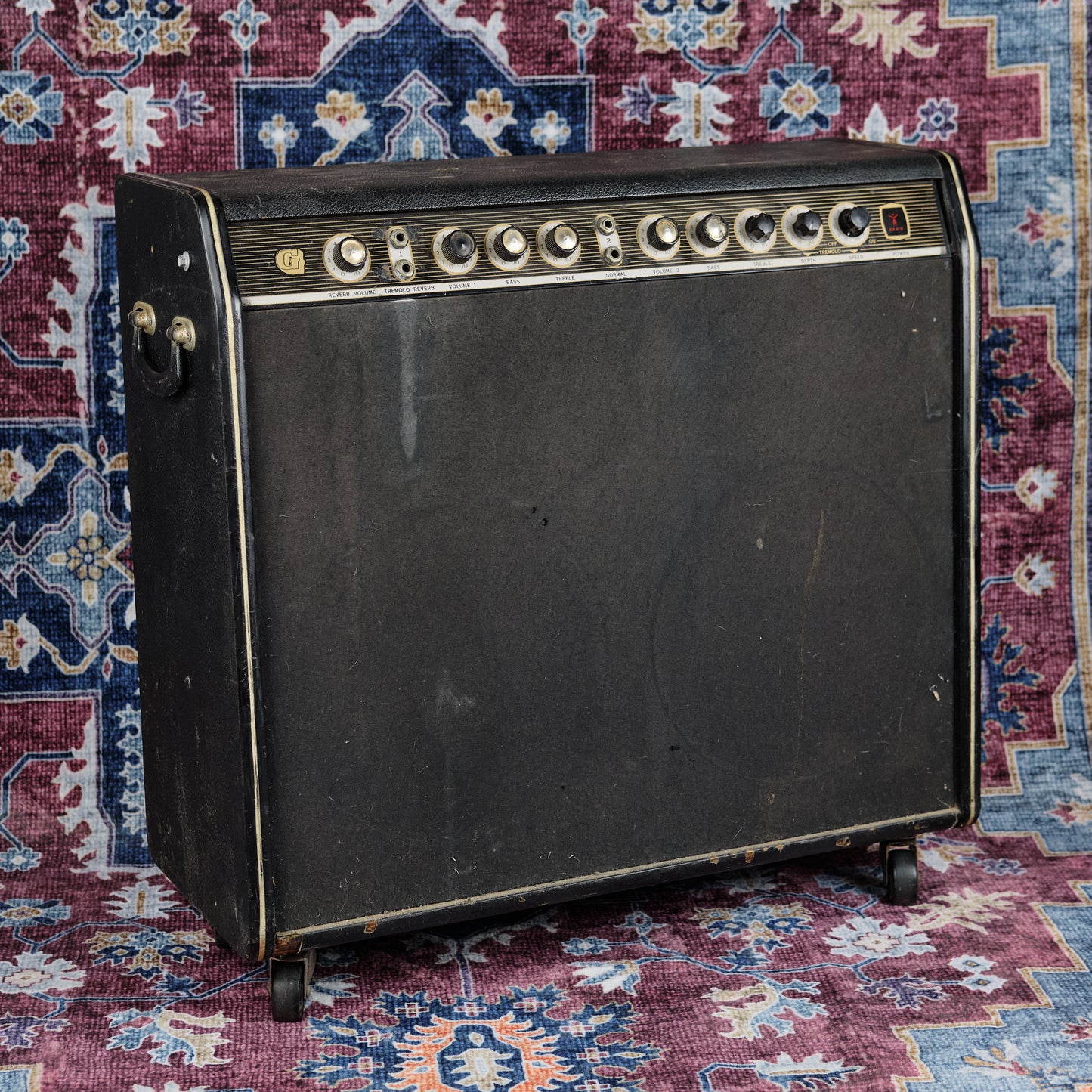 Some knobs appear to be replaced, and is missing some decals. The original TV legs have been replaced with wheels, which is quite handy. Pots aren't too scratchy, and sounds good plugged in! The tremolo on these models is super subtle, but sounds great and is definitely unique to these amps.