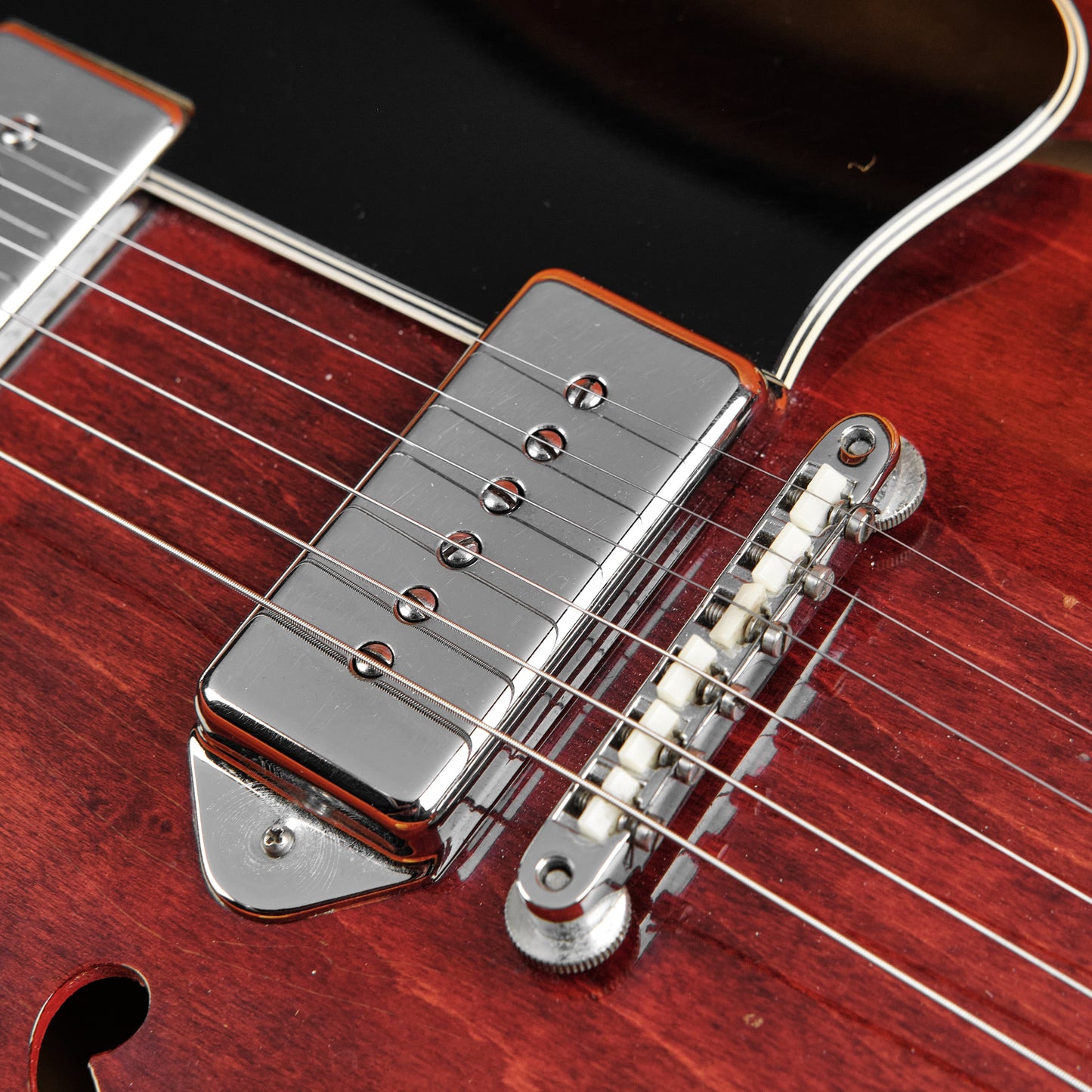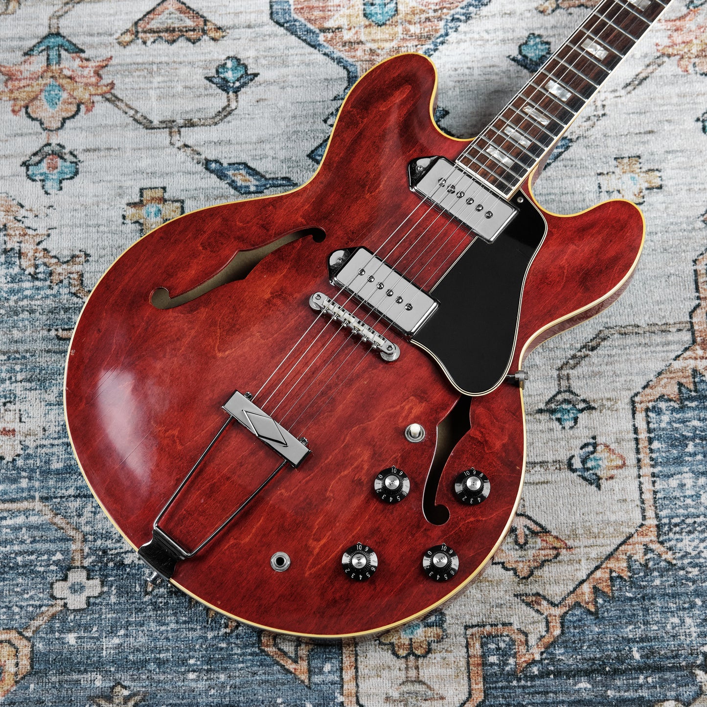Introduced around the same time as the iconic ES-335, the ES-330 retained the same body shape but instead featured a fully hollow construction and P90 pickups, close in concept to the ES-225 that predated it. This particular example is from 1967, right at the end as the long neck versions were being introduced leading into 1968. Super light and incredibly resonant with a pronounced low end, this example sounds mind bogglingly good! Both of the original P90s are articulate, with quite a surprising amount of output. As standard for Gibsons of this time period, the 1 9/16" nut width is present. Neck profile is close to a shallow D. ES-330s have been experiencing some newfound interest within the vintage market over the last few years, and this particular instrument highlights perfectly what makes these instruments so special!