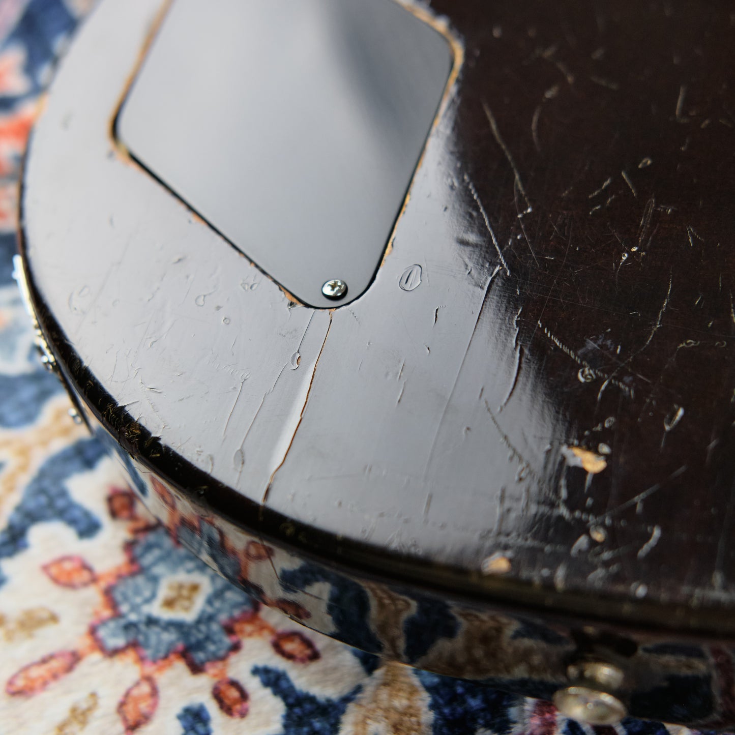 Cosmetic condition is rough, with multiple gouges, dings, checking, and a crack in the top which doesn't appear to impact on functionality or longevity. Hardware is functional, and plays well with a low action.
