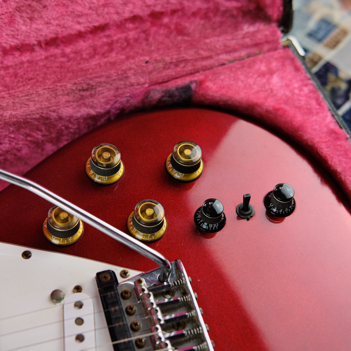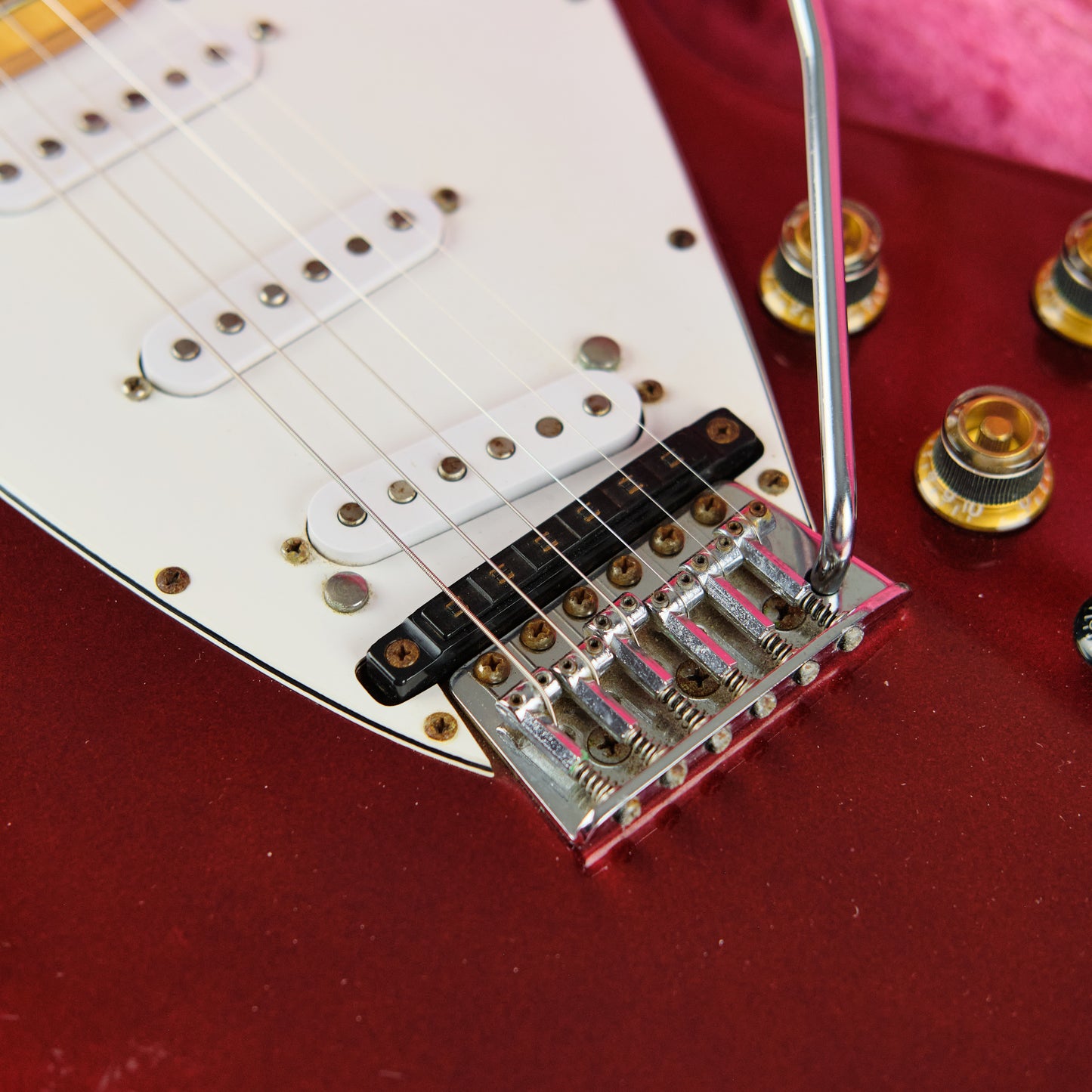 The Roland G505 Guitar Controller is made from an Ash body and Maple neck, alongside three Roland PU-134S single-coils. Manufactured in Fujigen Gakki factory which also built Fender guitars for sale within the Japanese market, the G505 takes some obvious design homages. These feature a variety of controls to dial in not only the guitar sound, but also various parameters for the GR-300 synthesizer. These feature two seperate outputs for both the straight guitar, and the synthesizer output. Sounds and feels like a lot of comparable S-style guitars of the time, but the real fun begins when you hook it up to its synthesizer unit!