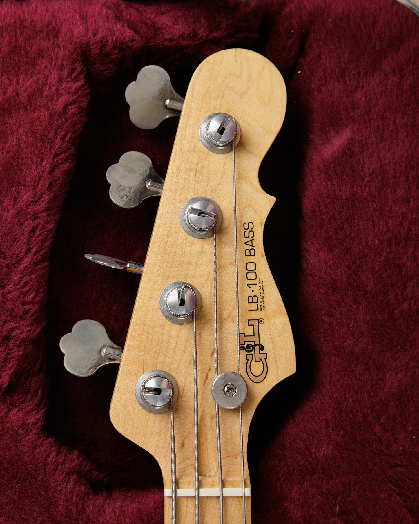 The LB-100 from G&L is a P-style bass with all the hallmarks of the iconic model. Alder body, maple neck, P-bass style split pickup, and a straightforward volume and tone control interface. This particular example is a nice balanced weight and has a super punchy sound. Stamps in the neck pocket and bass of neck, as well as serial number range indicate this model was built in October of 1994. Fit and finish on these examples is also rock solid, and super dependable. US made and in the Fullerton to boot!