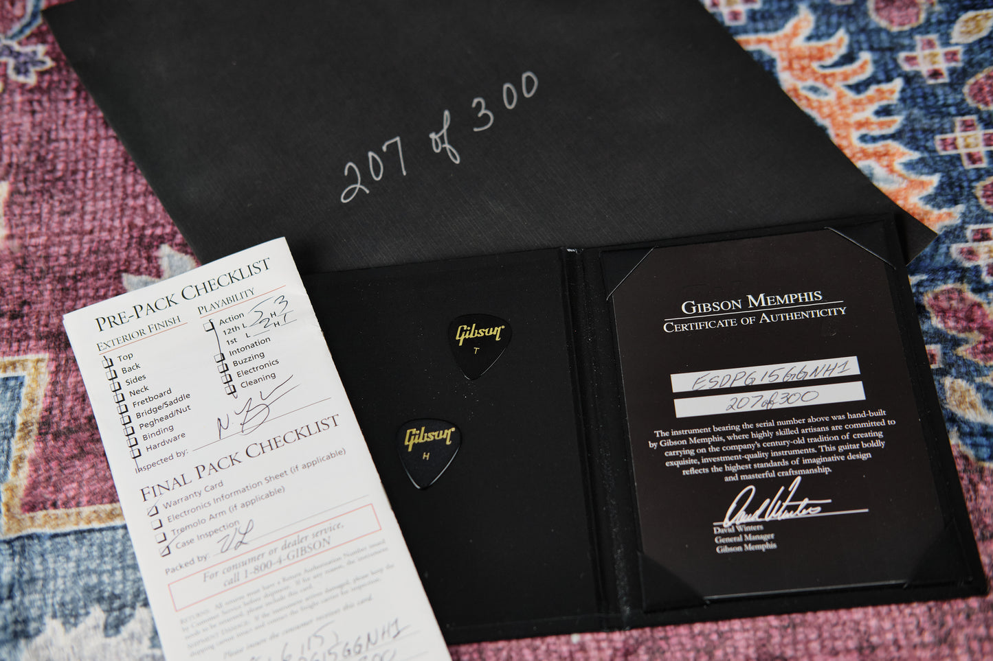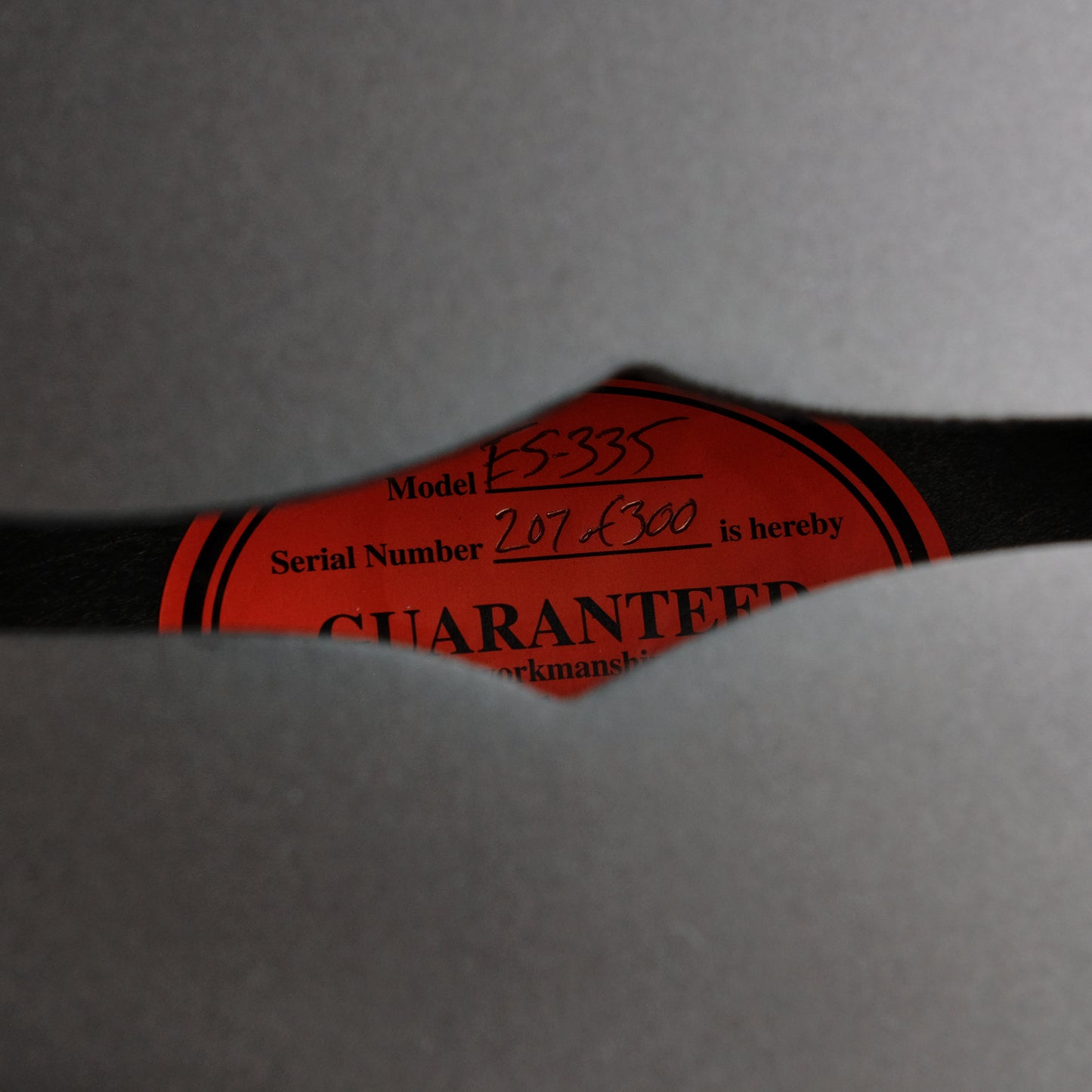It's 2011, and Gibson is raided by federal agents, taking their rosewood stock. After some deliberation, the rosewood is returned to Gibson as it was deemed to have not be acquired 'illegally'. The end result was a line of guitars called the Government Series, and the ES-335 was the top of the line offering. Finished in a quite fitting 'Gunmetal Grey', the Government series had fretboards utilising the originally confiscated rosewood. Another interesting feature of these models was the choice to use their Dirty Fingers pickups, no doubt a thinly veiled jab. Otherwise, these were pretty standard ES-335s made in very limited quantities (this example is 207 of 300).