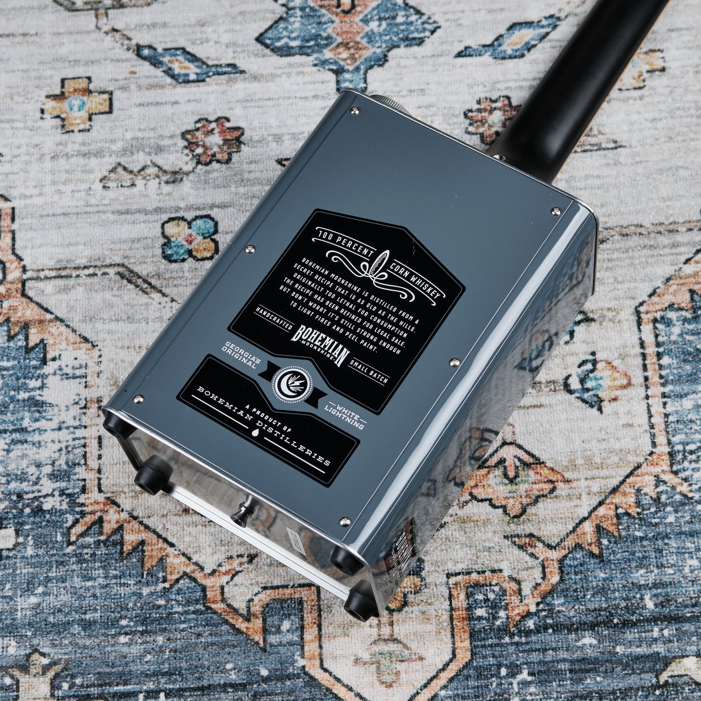 What do oil cans and guitars have in common? You would be forgiven for saying nothing, but in this case the utilitarian function of the oil can melds perfectly with the long history of guitar manufacturing. Based off the African township tradition of making guitars out of whatever was available, the Bohemian Moonshine Oil Can guitar takes these concepts and refines them to create an instrument that is not only playable and functional, but is also visually unique. Outfitted with two single coil pickups, volume and tone controls, and a 3-way selector switch, not only this instrument visually striking, but well outfitted to handle any performance situation you throw at it.