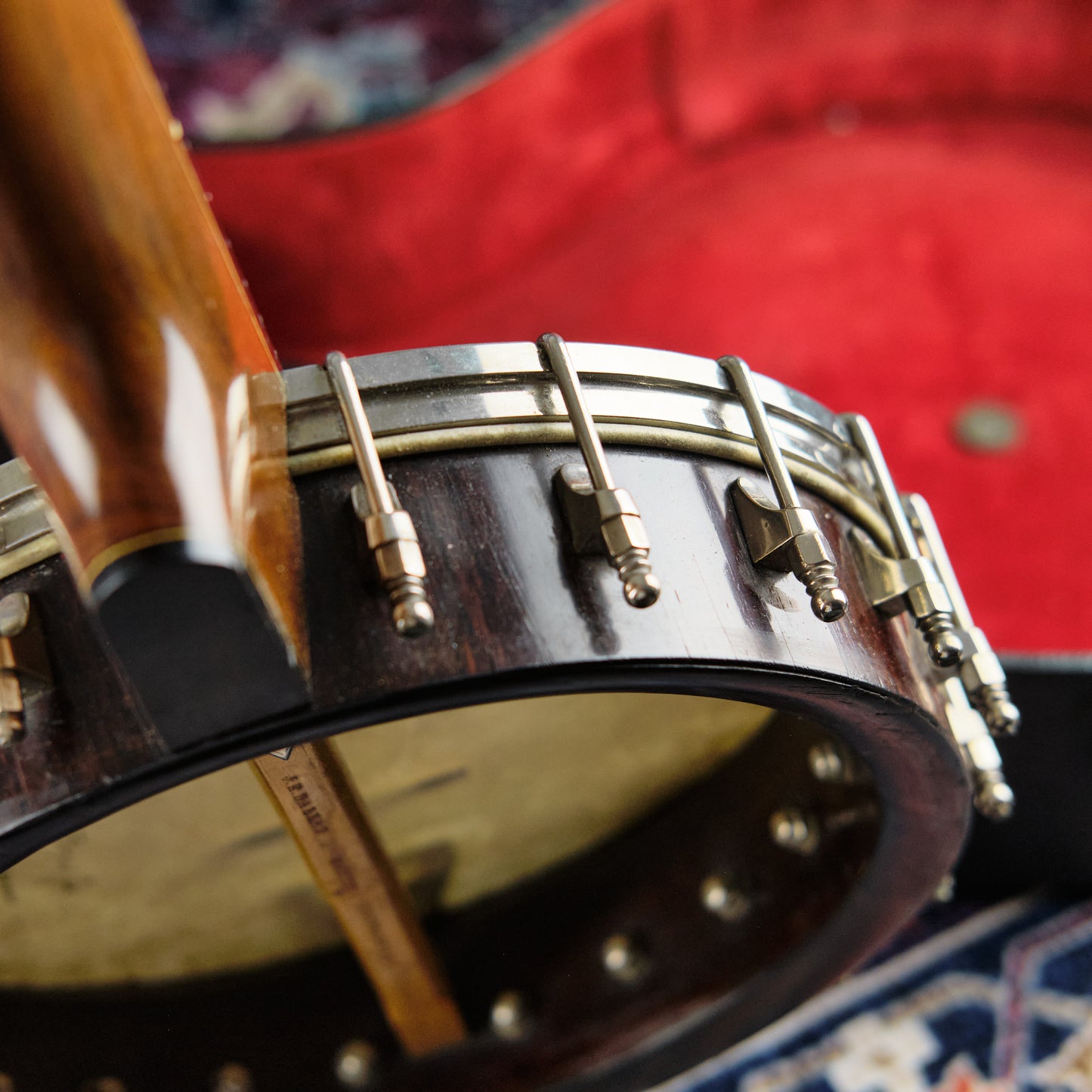 Manufactured by J.E. Dallas, a UK-based manufacturer of banjos, this particular example most likely was manufactured before 1905 and a name change, and was manufactured at the 415 Strand Street location before relocating in 1914.