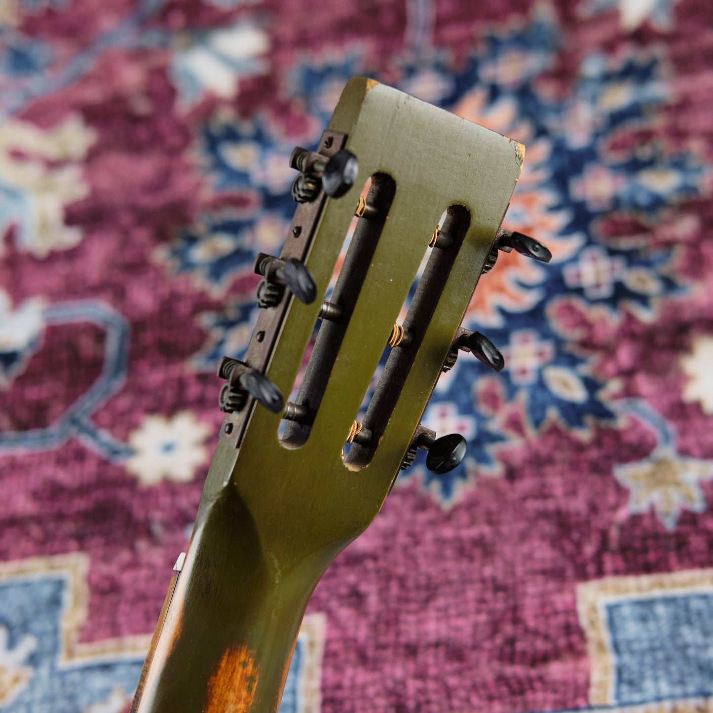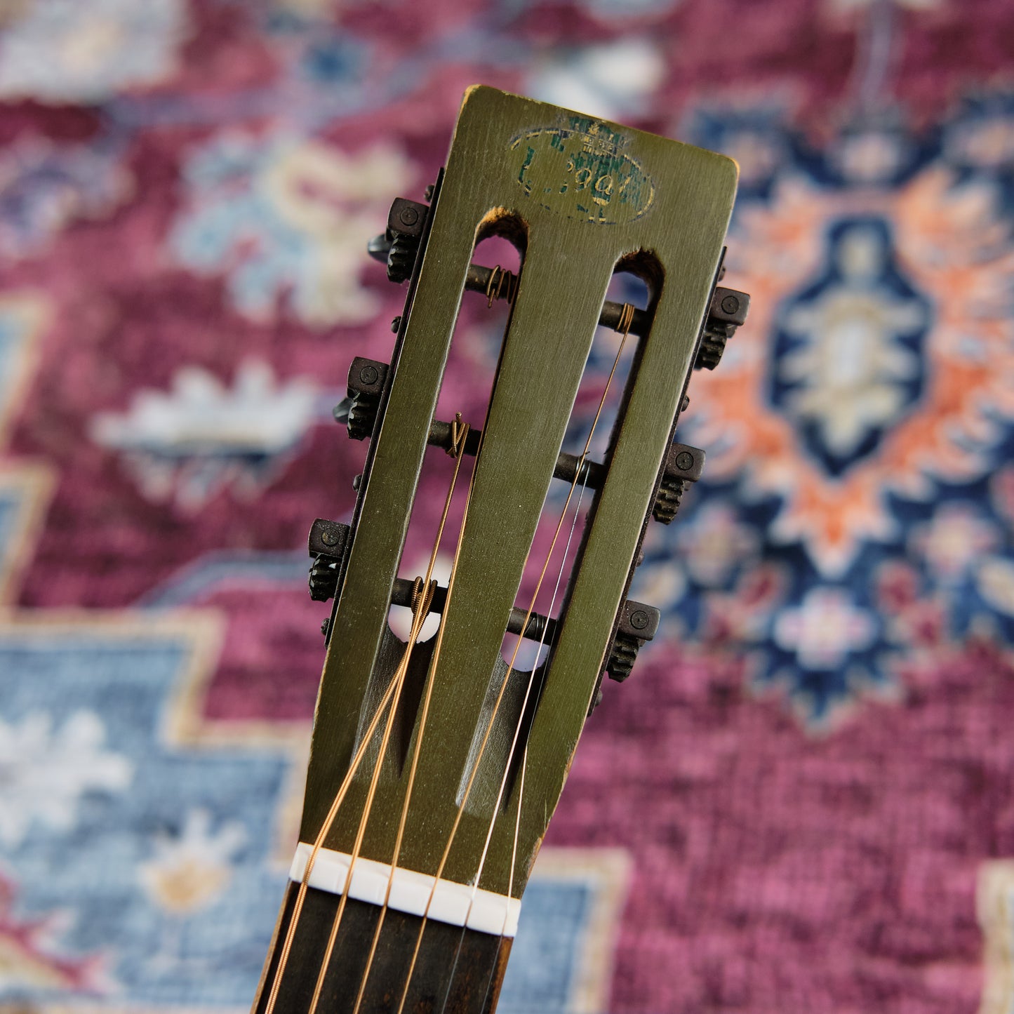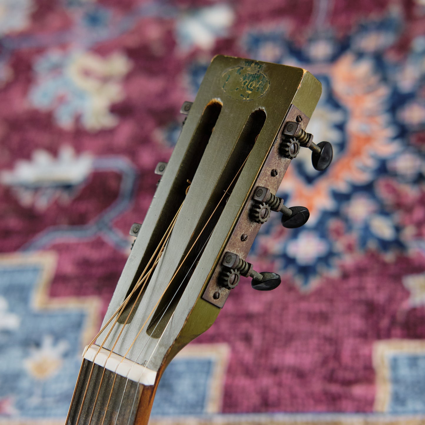 Regal was established in Indianapolis in 1896, and throughout its lifetime manufactured a variety of stringed instruments until being acquired by Harmony in 1954. This particular example appears to have been manufactured sometime in the 1940s based off other similar examples from this time period. Features a slot-head headstock design, with what appear to be the original tuning pegs. A very pronounced V-neck profile is featured, which is common for guitars during this time period. Super comfortable to play!