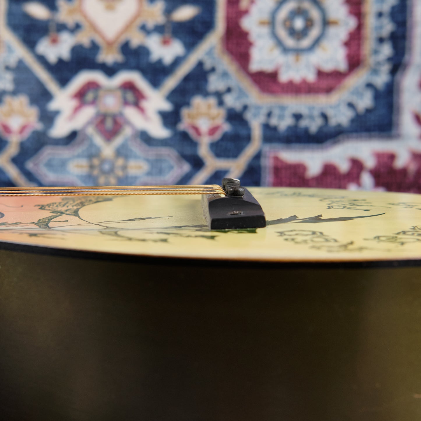 This particular example is acoustically lively, with a pleasantly mid-range focused attack. Sounds particularly good when detuned 1/2 - 1 step below E standard! Playability is also excellent, with a nice and comfortable low action.