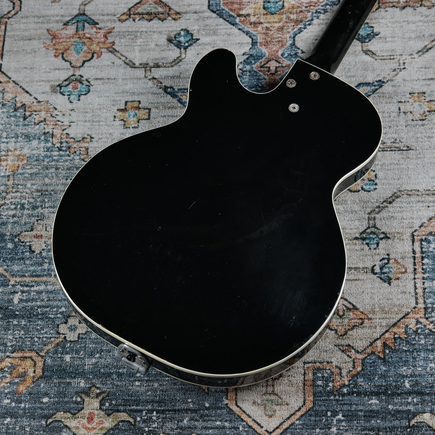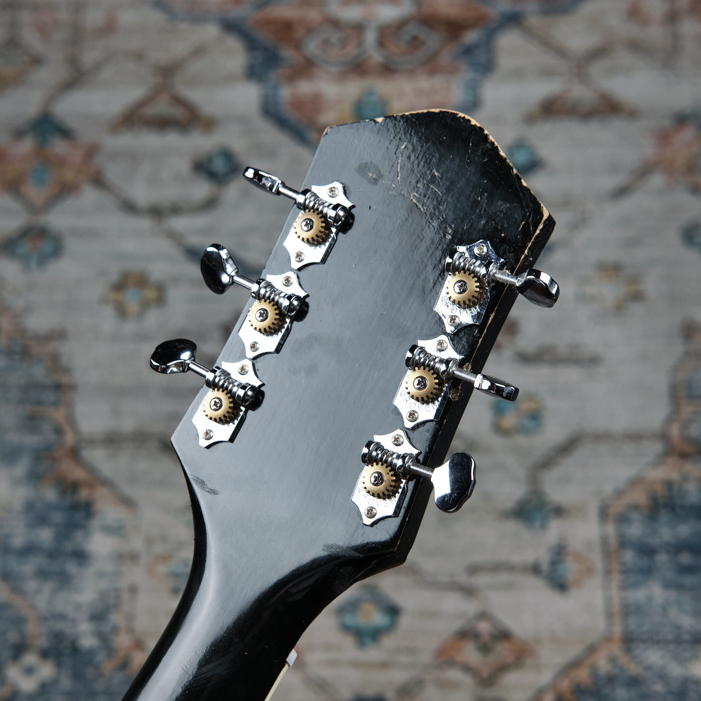 This particular example has a select few mods which makes it a more affordable, players grade instrument. In this instance the original pickups have been replaced with what appear to be late ‘60s gold foil pickups (which sound excellent by the way). The bridge has also been replaced, as have the tuners and pickguard. Plugged in this instrument is suitably funky and mellow, bright and honky, and feels awesome in hand as well!