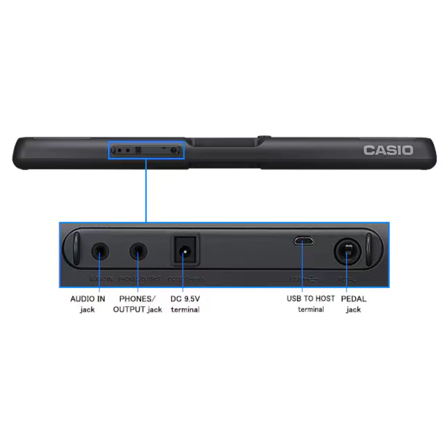 The CTS300 features 61, touch-sensitive keys alongside the functionality and use-ability of a pitch-bend wheel, carry handle and longer battery life. Equipped with built in speakers, the CTS300 showcases a sound that defies it's portable and slim stature. The addition of 48-note polyphony, 400 built-in tones, and a metronome (super important) round out a wholly versatile and affordable package!