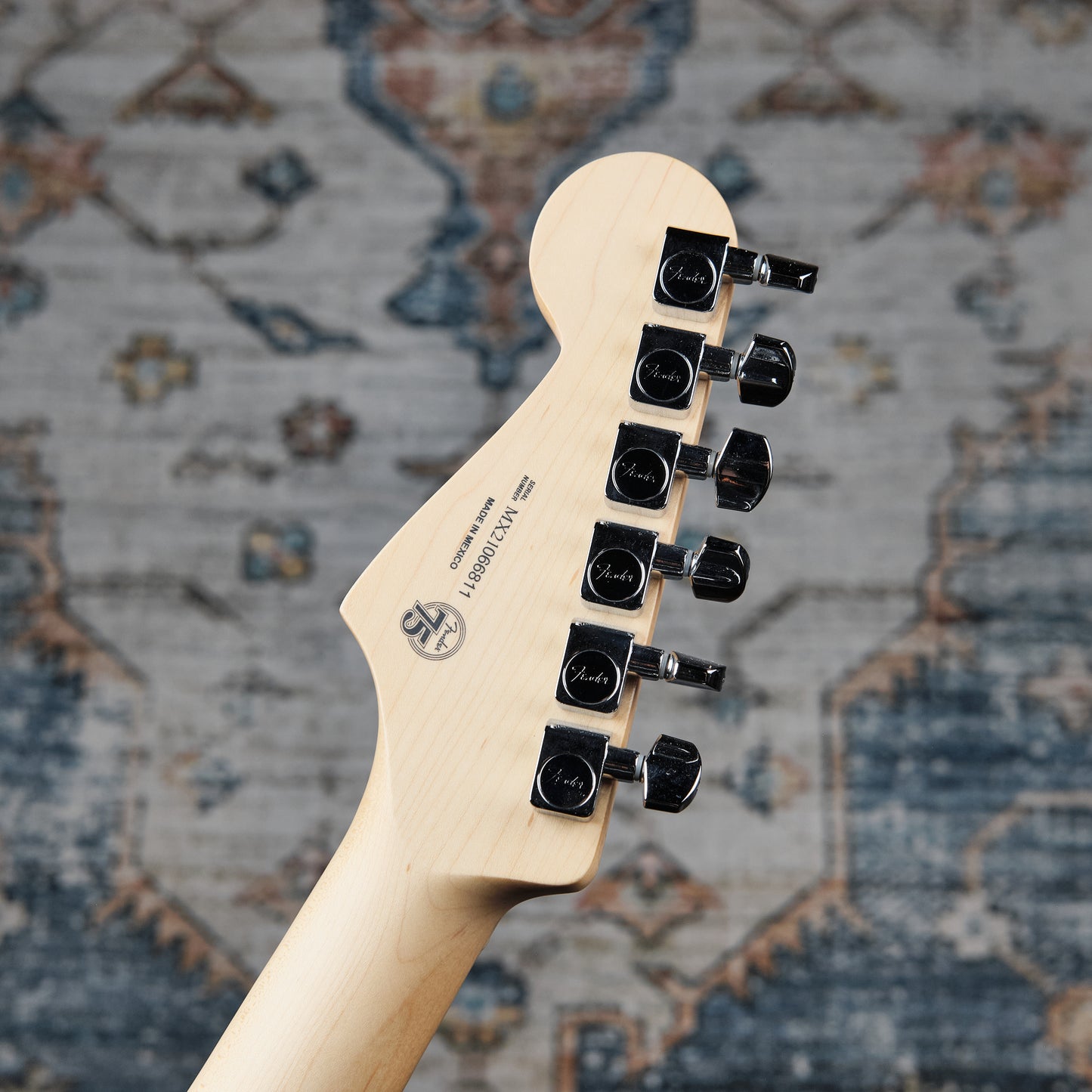 The Player Duo-Sonic sports a 24" scale length, C shape neck, 9.5" radius, and a string-through-body hardtail Stratocaster bridge. This example is nice and light, and plugged in sounds punchy and articulate, sounds great and is a joy to play!