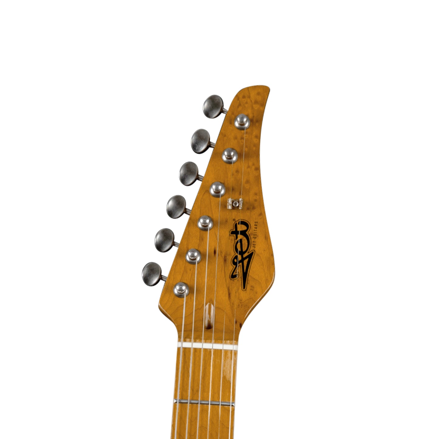 Not only that, but the guitar boasts features never, ever seen in a guitar at the price, such as a bone nut, roasted Canadian maple neck with a smooth satin finish, a 9.5" radius roasted maple fingerboard, a rounded neck join for ease of playability up the neck, high quality aged hardware including a modern hard-tail bridge.