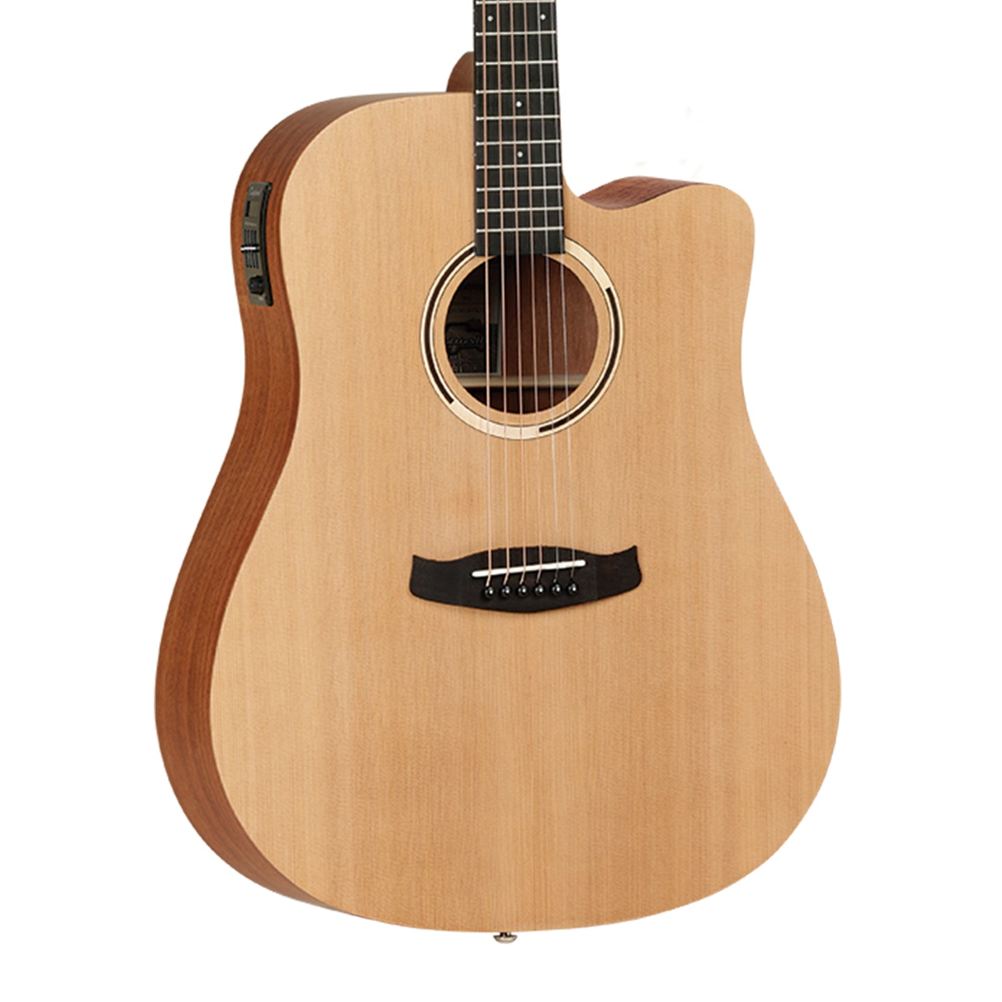 - Full-size dreadnought body shape with cutaway